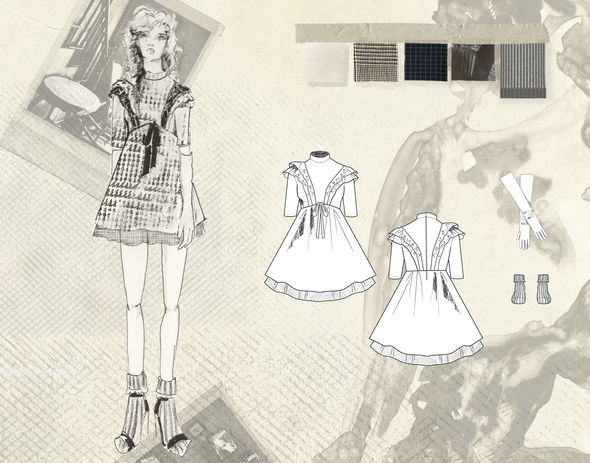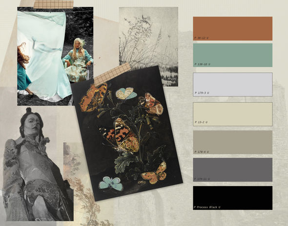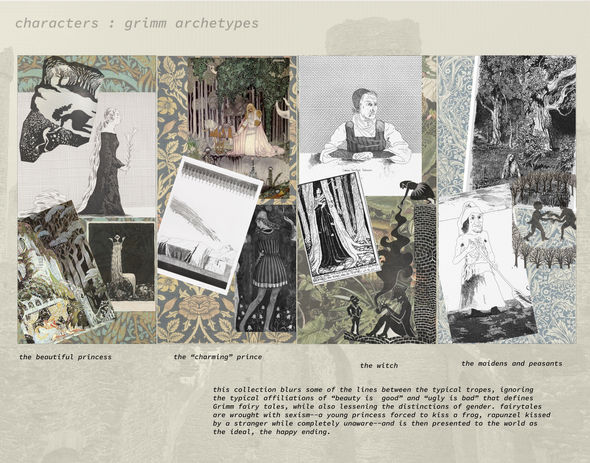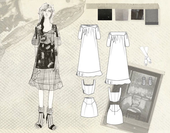 Hiraeth, my junior year portfolio, was inspired by Lydia Davis' micro story Love--the story of a woman who falls in love with a man that has already died. The designs consider the subversive romance within this tale, and feature graphic screen prints displaying that embrace a sense of nostalgia and longing. This collection also references the Victorian mourning period, with dropped shoulders and a muted palette